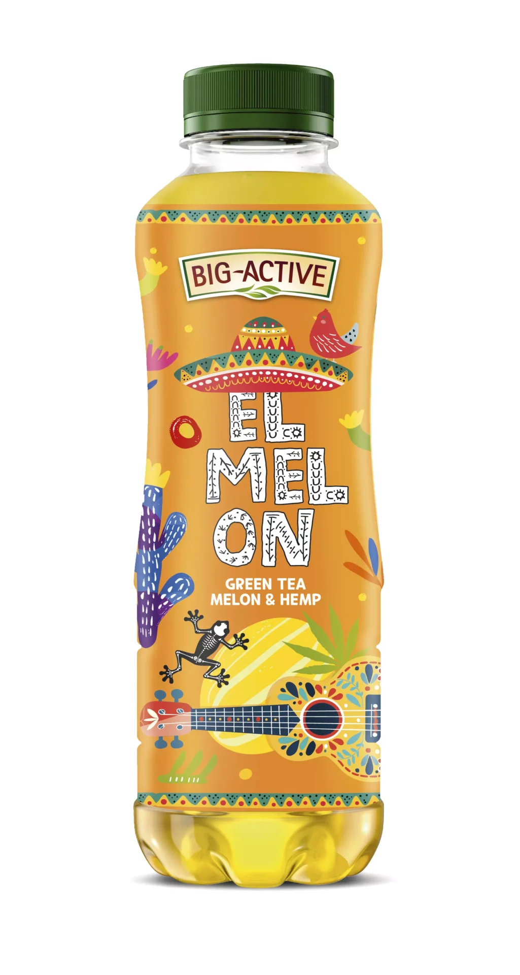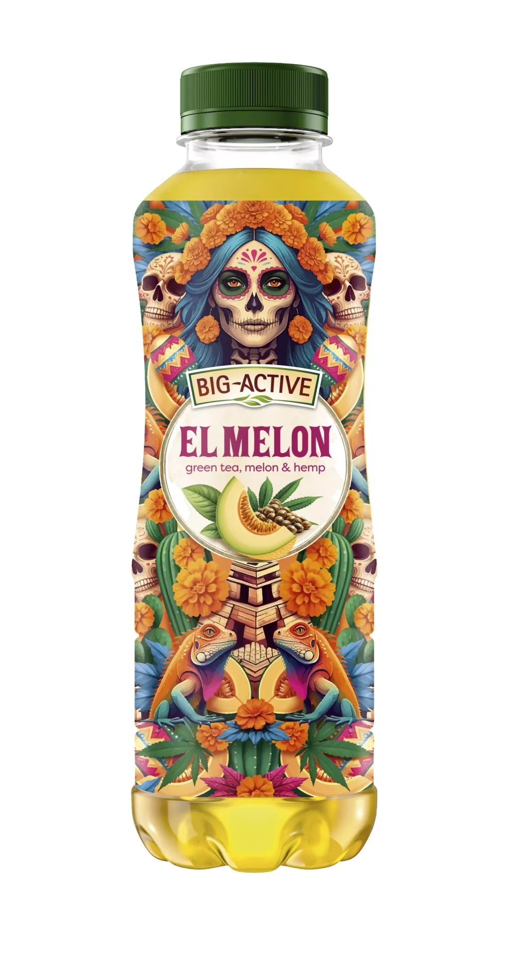 Big-Active El Melon – wraz z pierwszym łykiem przenosi na tętniące kolorem ulice Meksyku! El Melon to owocowo-herbaciany napój na bazie zielonej herbaty o smaku melona z ekstraktem z nasion konopi siewnych. Fantastycznie smakuje i doskonale orzeźwia! A na grafikach znaleźć można najbardziej charakterystyczne dla Meksyku i Ameryki Południowej barwne motywy.