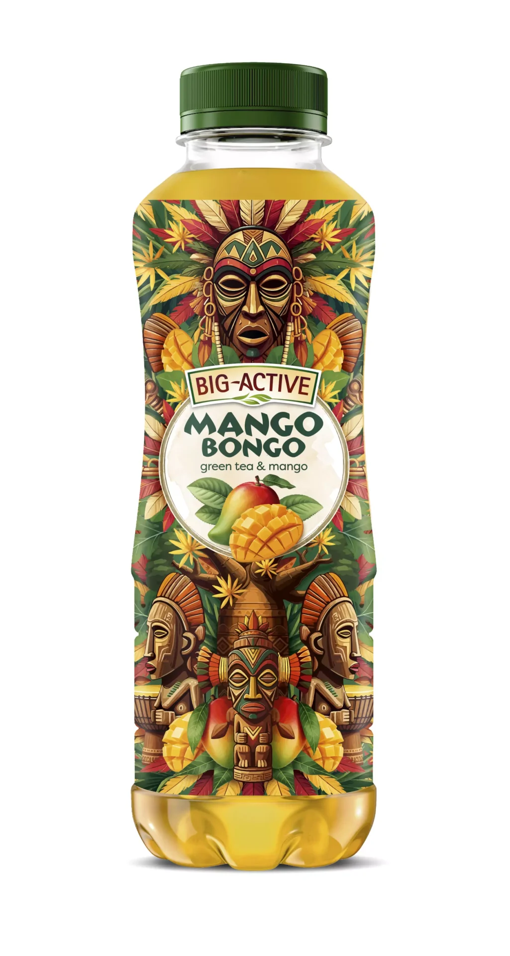 Big-Active Mango Bongo to kwintesencja energetycznego orzeźwienia! Mango Bongo to pyszne połączenie delikatnego smaku zielonej herbaty ze słodkim, soczystym mango. W tym wariancie dwie grafiki na butelkach zainspirowane zostały afrykańskimi plemionami i nieodkrytą dżunglą.