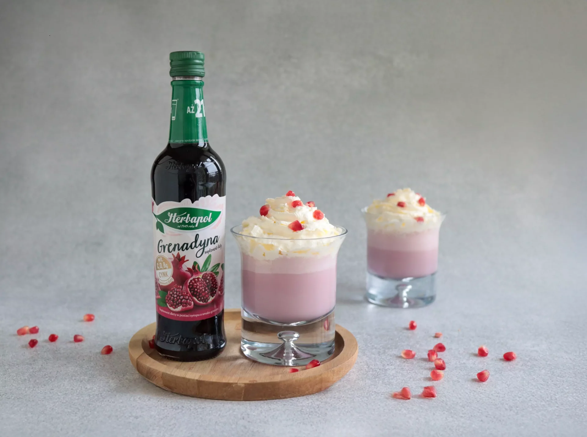 Idealnym składnikiem takich koktajli jest Grenadyna Herbapolu, która zapewnia pyszny, owocowy smak i głęboki, rubinowy kolor. Dzięki niej każdy napój nabierze wyjątkowego charakteru, stając się małym, kulinarnym dziełem sztuki. Możliwości ich przygotowania jest naprawdę mnóstwo, a ogranicza nas tylko wyobraźnia!