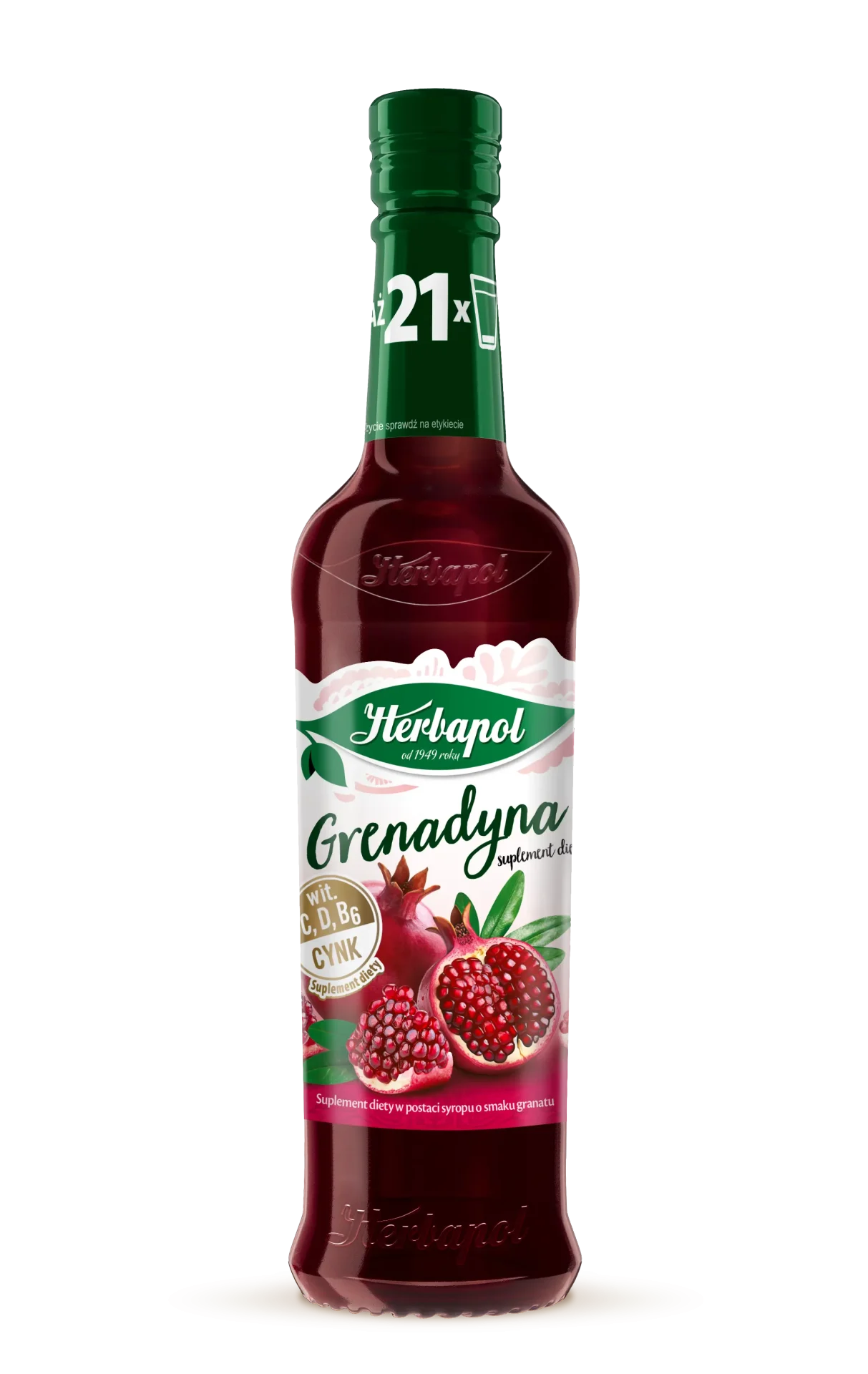 Grenadynę Herbapolu wyróżnia bardzo lubiany smak owoców granatu, który perfekcyjnie łączy w sobie przyjemną słodycz i wspaniałe orzeźwienie. Powstaje na bazie soku z owoców granatu, pochodzących ze słonecznej Grecji. Wydajny syrop doskonale sprawdzi się również kiedy planujemy spotkania w większym gronie.