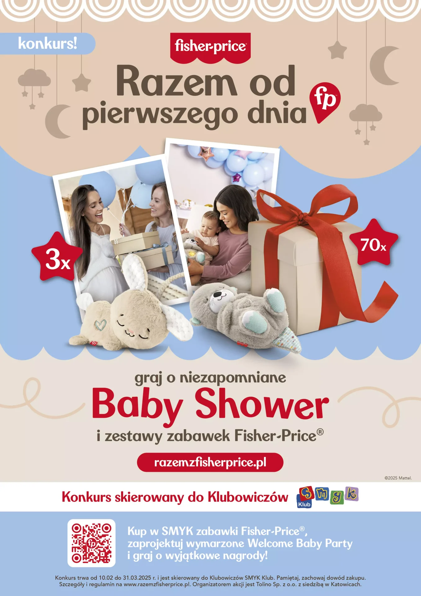 Konkurs trwa od 10 lutego do 31 marca br. i skierowany jest do klubowiczów SMYK. Dlatego jeśli jeszcze nie jesteś w Klubie SMYK – dołącz już dziś i weź udział w tym wyjątkowym konkursie. Szczegóły i regulamin akcji konkursowej dostępny jest na www.razemzfisherprice.pl.