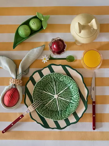 Hitem sezonu są niezaprzeczalnie paski, które możesz wprowadzić do wnętrza na przykład na talerzach, uzupełniając je radosną zastawą z motywami roślinnymi. Jeśli dodatkowo postawisz na wesołe kolory, takie jak żółty, zielony czy różowy, każda serwowana potrawa zyska naprawdę wyjątkową oprawę. Odwołania do przyrody znajdziesz na łyżeczkach z kwiatami, miseczkach w kształcie kapusty, a także na uroczej solniczce i pieprzniczce w kształcie groszku.
