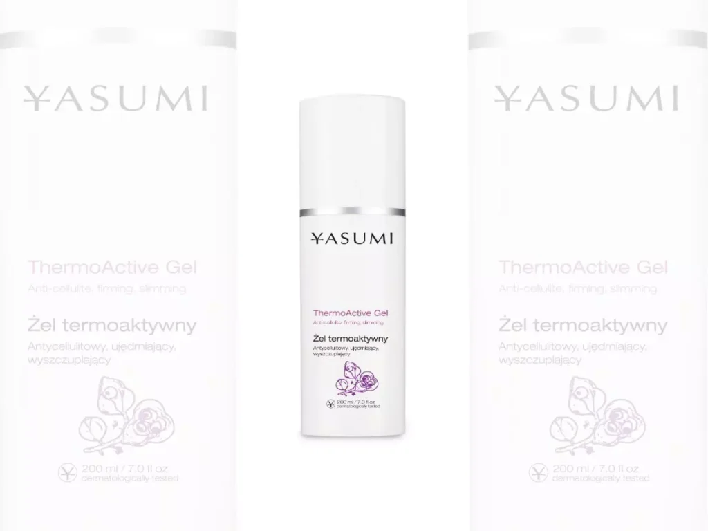 Specjalistycznym kosmetykiem do walki z cellulitem jest Yasumi Thermo Gel. Po jego aplikacji skóra rozgrzewa się i nieco czerwienieje, ale to znak, że kosmetyk działa. Uczucie ciepła mija po około godzinie. Pamiętajcie jednak, by nie stosować preparatu na obszarach ciała z tendencją do pękających naczynek i powstawania żylaków. Yasumi Thermo Active Gel – termoaktywny żel wyszczuplający i antycellulitowy do codziennego stosowania na miejsca dotknięte cellulitem: brzuch, pośladki, uda. Jego składniki działają jak zgrany zespół: przyspieszają metabolizm i mikrokrążenie, wspomagają spalanie tkanki tłuszczowej i usuwanie toksyn, przywracają jędrność i napięcie skóry, pomagają zmniejszyć widoczność cellulitu.