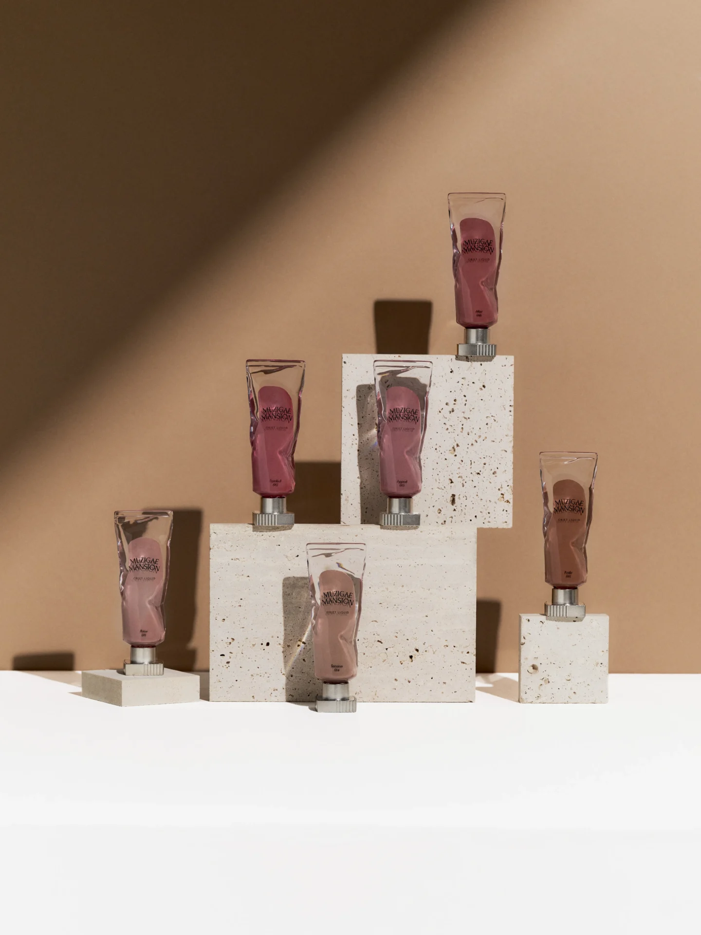 Muzigae Mansion oferuje kosmetyki do makijażu: podkłady (cushiony), pomadki i tinty do ust, a także błyszczyki.